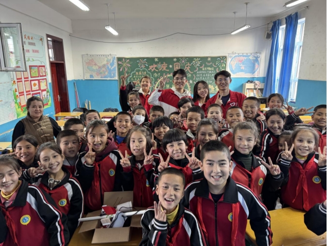 除去完成本职教学工作,我一直在想我还能够做点什么。正巧县团委发布了招募志愿者参与“我们爱科学”青少年科普研学活动的通知,我马上报名了。我所在的伊宁县,部分乡镇、村级小学的孩子们平时鲜有机会动手做实验,接受科普教育的次数也比较少,我想给孩子们带来一点科学上“小小的震撼”。今年10月,我和团队的其他成员一同走进吐鲁番于孜乡克伯克于孜小学,带领孩子们开展“摩擦起电”“光通信”“旋转气球圈”等趣味科学实验。当我看到每个小朋友手中都握着一支笔,每个人都抬头看向老师,每个人都坐得端正、听得认真,踊跃举手、自信发言时,我不禁感叹:这不就是新疆的花朵吗?这是祖国的花朵,这是我们未来的花朵。
