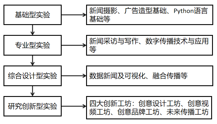 实验教学内容注重新媒介技术与新闻传播实践领域的结合,建构了文理工艺交叉为特色的实验教学体系。