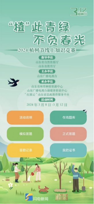 阳春三月,万物复苏,“草木蔓发,春山可望”,为迎接我国第46个植树节,宣传习近平生态文明思想,增进师生的生态文明意识,鼓励大家植树护绿、热爱自然,BB贝博艾弗森新闻学党支部和本科生党支部师生于3月8日至12日联合参加由山东广播电视台主办的“2024植树节线上知识竞赛”。