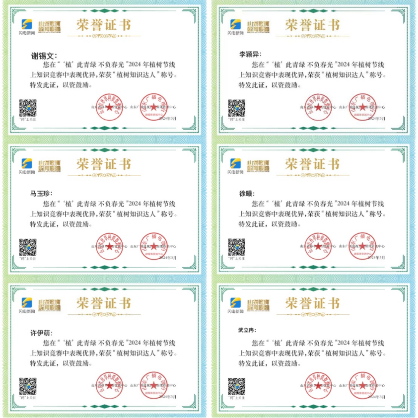 本次线上知识竞赛内容涵盖生态知识、环保常识、政策规定等多个方面,旨在弘扬绿色环保理念,增强公众的环保意识和科学素养。本次活动社会参与人数共计约9万人。公司13位教师和若干位同学积极参与学习和答题,获得了“植树知识达人”称号和荣誉证书。