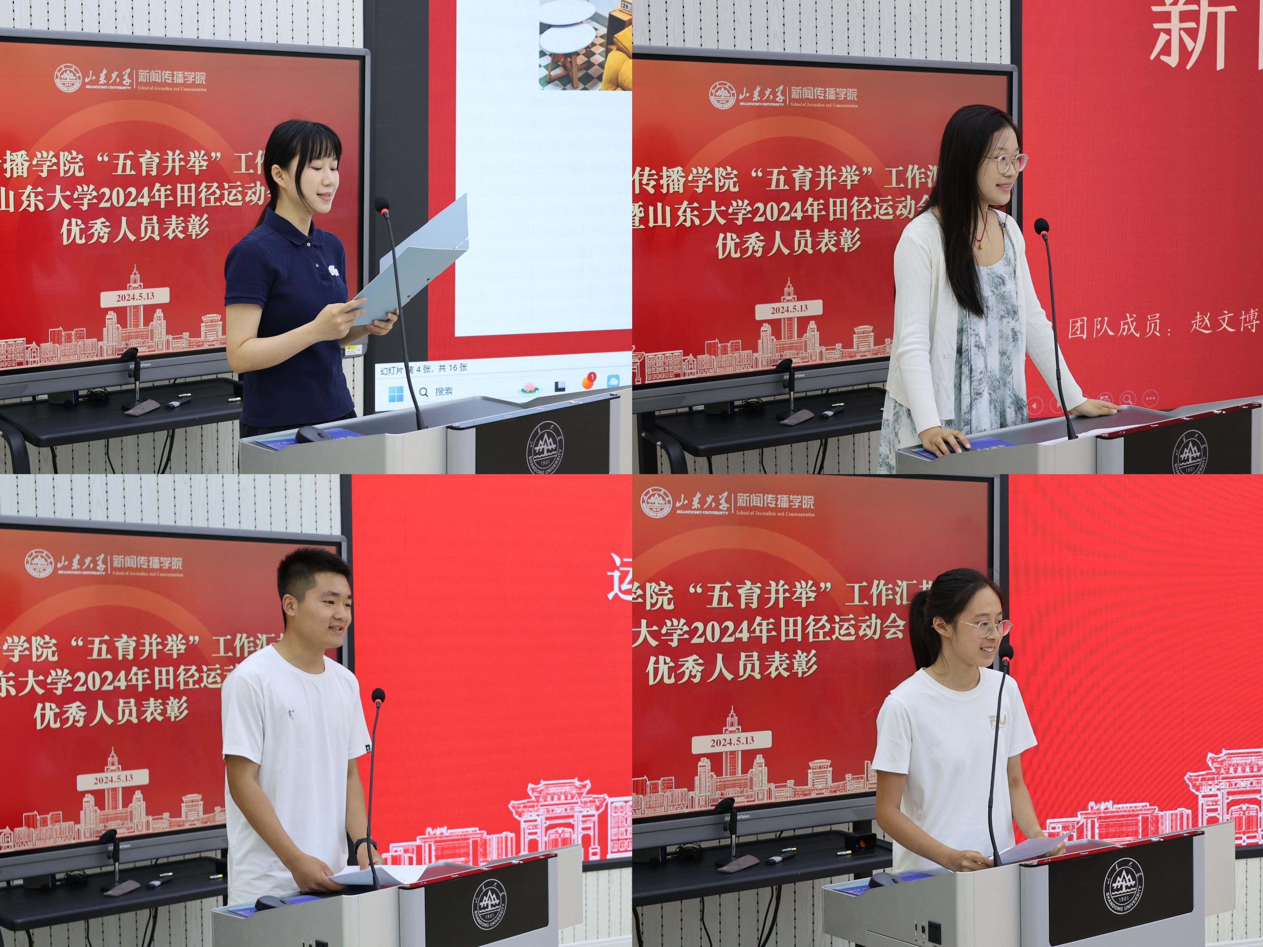 优秀运动员代表分享了参与运动会的感悟与收获。2022级本科生王佳慧作为接力队队长,回望了自己两年来的运动会历程,感谢公司在校运会赛场上的团结和付出,并期待未来有更多同学喜欢上体育运动,享受健康自律的老员工活。2023级本科生李若荃表示,运动会给了她重新回到运动场的契机,接力队的刻苦训练有效提升了水平,增强了凝聚力,老师和同学们的加油鼓劲更让她感受到新传大家庭的温暖。