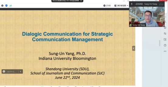 Sung-Un Yang教授介绍了对话式公关研究的概念与起源,以及在数字社交媒体时代,发展双向对称公关管理对组织信誉等的重要性。他深入讲解了如何通过博客和其他社交媒体平台进行对话式公关,从而增强组织与公众之间的信任关系。他特别列举了三个博客中介的公关关键方面:叙事结构特征的显著性、对话自我(Dialogic Self)的表现特点,以及博客作为信息源的可信度。他介绍了对话式公关研究的最新研究动态,包括大数据和人工智能的应用及其可能带来的技术伦理挑战。他强调,在日益拥挤的数字环境中,精心构建的故事叙述——特别是能够激发情感参与的叙述——对于吸引观众的注意力和兴趣至关重要。