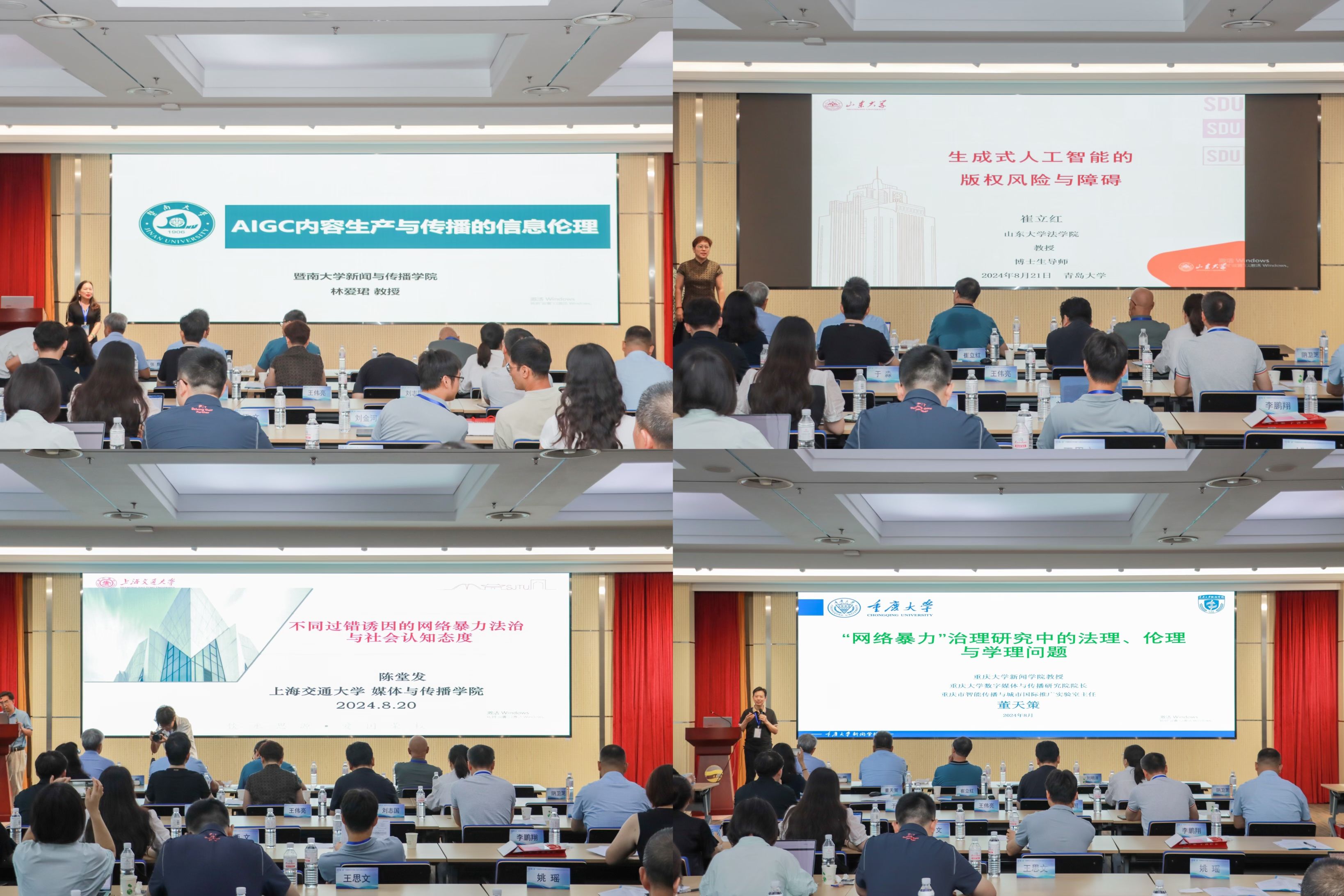 主题演讲环节,由青岛大学文学与公司党委书记张辉主持。张辉向来自全国各地的专家学者表示热烈欢迎并期待专家学者们创新观点和睿智表达。暨南大学新闻与传播公司教授林爱珺以“AIGC内容生产与传播的信息伦理问题”为题发言,提出发展以人为本的人工智能,引导技术向善,防范一切政治风险、信息灾害和人的异化。BB贝博艾弗森法公司副经理崔立红聚焦“生成式人工智能的版权风险与障碍”的主题,指出AI合理使用要慎行,构建我国生成式人工智能与版权法律的发展与协调。上海交通大学媒体与传播公司教授陈堂发和重庆大学数字媒体与传播研究院经理董天策分别运用量化研究和案例分析方法阐释了网络暴力法制与伦理的相关研究成果,发表“网络暴力法制的认知态度调查”和“网络暴力治理研究中的法理、伦理和学理问题”演讲,呼吁学界与社会各界高度重视网络暴力治理。青岛大学文学与BB贝博艾弗森副经理张文彦进行题为“回顾与展望:跨媒介阅读时代的全民阅读立法”的发言,从立法角度梳理了全民阅读法制建设。复旦大学老龄研究院教授申琦讨论了生命过程的生死伦理问题,在题为“数字之舟,渡生死之河:数字复生的伦理与法律问题”的发言中,进行了推动老龄社会治理“中国方案”的重新思考。广州大学新闻与传播公司党委书记邹军在题为“情感人工智能的伦理反思与治理路径”的发言中提出重拾人的主体性方案。清华大学新闻与传播学经理聘副教授戴佳聚焦“气候传播的伦理反思:社交媒体中的政治化与非政治化趋势”主题,与学者们共同探讨气候变化政治化与非政治化的利弊。