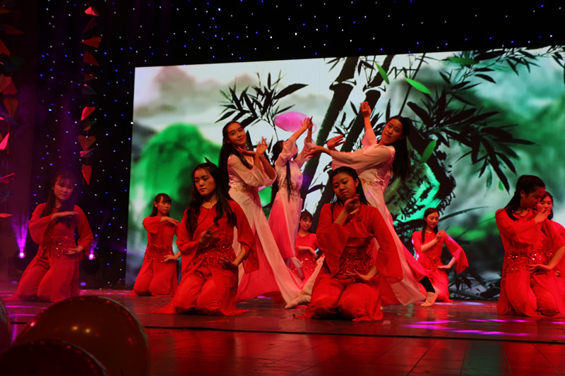随着强劲乐点的响起,两院员工激情的开场舞《BOOM》拉开了晚会的帷幕,瞬间引爆全场。歌曲串烧使场上气氛迅速升温,随后两位十佳歌手带来的男女独唱《回到过去》、《月牙湾》以及《team》迎来阵阵掌声。最让人印象深刻的是南方乐队带来的民谣演唱,这个由同学们自行组建的乐队用多首歌曲的组合串烧,将淡淡的思绪弥漫在全场,引发了全场观众的大合唱。歌曲过后火热的国标舞《Can’t believe it》使得晚会气氛达到了第一个高潮。水袖独舞《燕寻月》和古典舞蹈《蜀绣》动作优美灵动,展现了东方文明美的神韵。同时,京东大鼓传人陈诗宜与她的老师们带来的《父母深恩重如山》让大家感受到了传统民间文化的韵味。语言类节目小品《甄嬛新传》台词新颖逗趣,引发全场笑点。随后,李政军的歌舞唱跳《July》使得现场观众们尖叫不断,莎士比亚的经典话剧《威尼斯商人》被“玩家剧社”演绎得淋漓尽致,综合技击《对弈》现场,四射的火花和持续不断的呐喊与掌声将晚会气氛推向全场最高点。最后,随着《同一首歌》旋律的响起,全体老师及演职人员上台合影,晚会在大家的欢声笑语中落下帷幕。