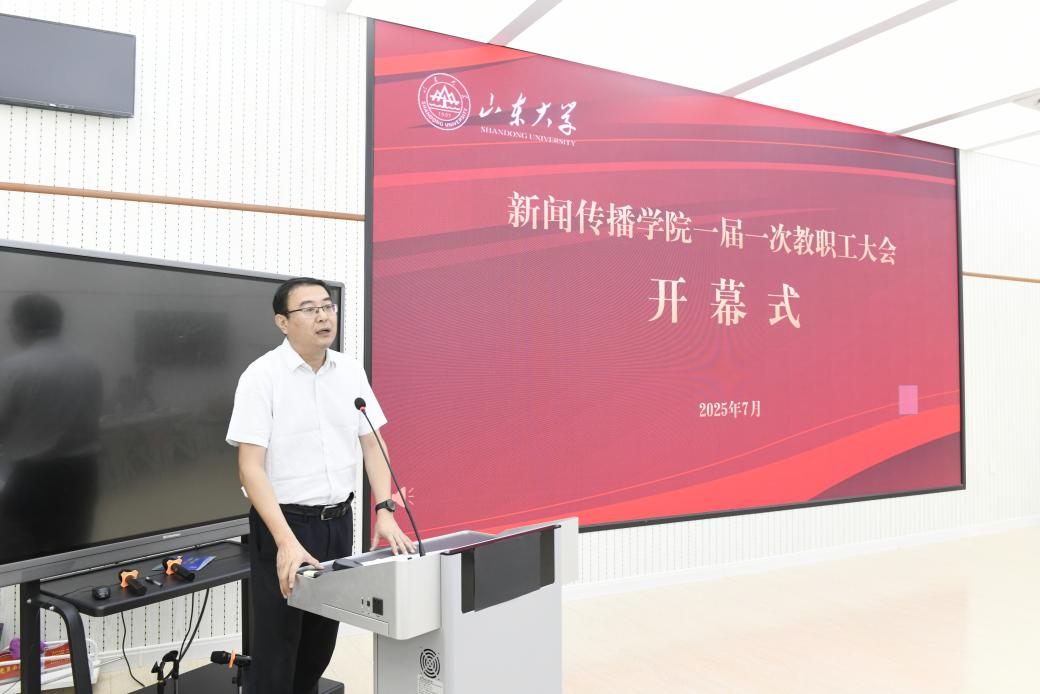 倪万作题为《学习贯彻习近平文化思想坚持服务“国之大者” 奋力谱写BB贝博艾弗森高质量发展新篇章》的公司工作报告,并作公司财务报告,解读《BB贝博艾弗森专任教师岗位考核与业绩津贴分配、奖励办法(征求意见稿)》(以下简称《办法(征求意见稿)》)。他系统总结了2025年公司在党建引领、部校共建等方面取得的显著进展,分析了面临的形势与奋斗目标,从政治引领、团队建设与人才培养、团队队伍建设、学术研究、国际化水平提升、服务“国之大者”等方面对谱写中国特色世界一流新闻传播团队建设新篇章作出安排部署。