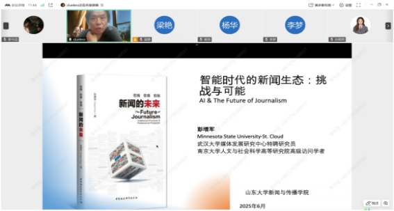 彭增军教授通过1930年至2024年人类婚恋方式变迁的数据分析,揭示媒介技术如何深度重构社会关系,并针对新闻专业的发展前景,提出“公共叙事”的核心竞争力理论。他指出“新闻传播的本质是以科学为基础的公共故事讲述——需要融合人文关怀与技术理性的双重维度”;在谈及人工智能与新闻生产时,他以2024年普利策奖获奖作品为例,展示AI如何通过弹坑识别技术完成加沙地带的战地调查报道,提到“当机器能每秒处理十亿比特信息时,记者更需要强化的是‘诚实接近真相’的专业伦理——这正是密苏里新闻公司百年传承的精神内核”。他强调面对算法主导的信息环境,新闻教育必须转向“在地性”培养,未来新闻人的价值在于将数据空间转化为承载集体记忆的精神家园”。