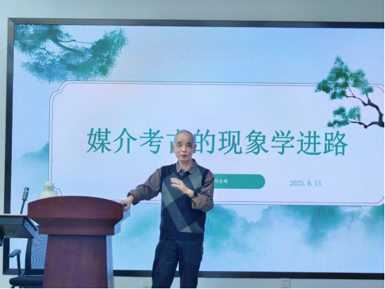 芮必峰从现象学视角系统阐释了媒介理论的核心命题,引导同学们重新思考媒介的本质与存在方式。他从当前学界的概念混淆现象切入,指出媒介研究的首要任务是厘清基本概念,并提出“媒介不是现成的对象,而是关系的存在”,强调媒介本质上是人类传播活动中的功能性现象。通过区分“媒介”与“媒体”,他阐明前者侧重功能性,意义体现在具体的传播实践之中;后者则是承载这一功能的物质载体。