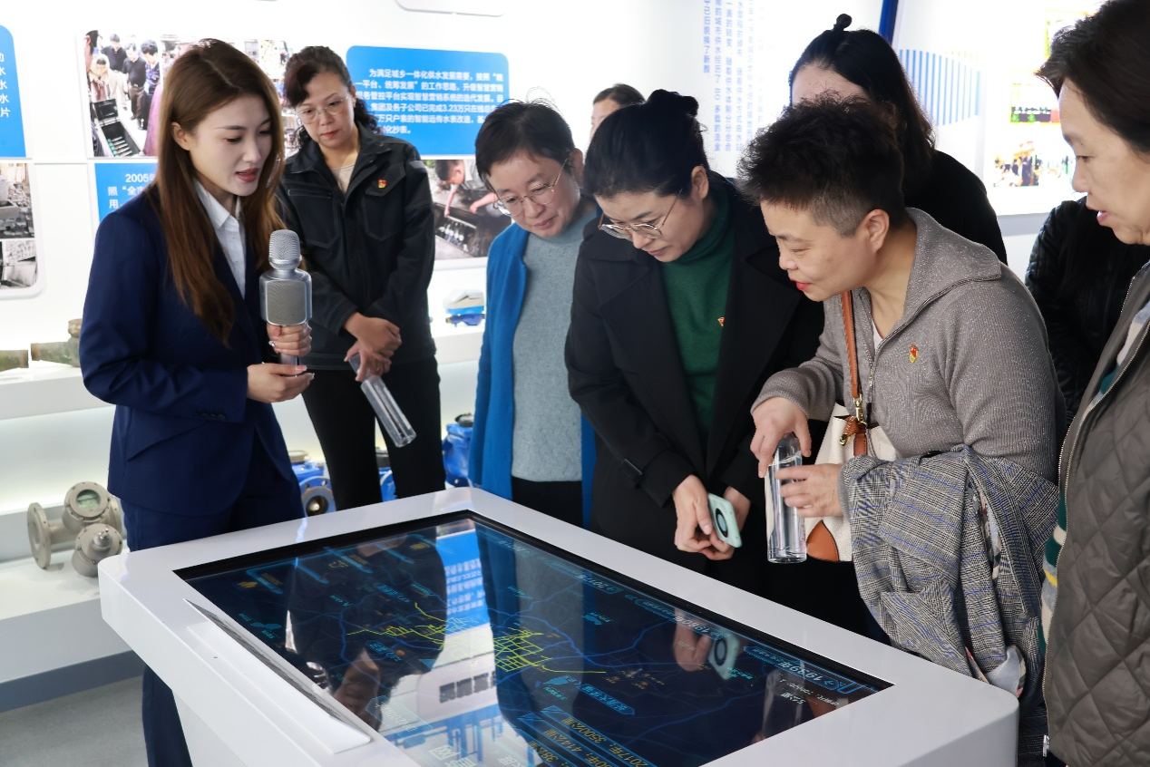 首先,双方党员共同参观了济南水务集团“清流濯缨·廉洁水务”廉洁文化馆和供水史馆。廉洁文化馆以“清廉润泉、实干兴业”为主线,设置了“序厅”“廉史钩沉,清源长流”“慎独慎微,清风廉行”“以法保廉,以廉促行”“殷鉴不远,警钟长鸣”“明湖净心,廉洁水务”六个主题展区,依托图文展板、实物陈列、案例剖析与互动体验等形式,系统展示了集团在党风廉政建设、风险防控及廉洁文化塑造方面的创新实践。党员们在沉浸式参观学习中,深刻体悟到“以水为鉴、以廉为基”的廉洁理念。在供水史馆,党员们沿着“泉城供水九十一年发展脉络”,感受了济南水务从人工取水到智慧供水的时代跨越,体会到国有企业在保障民生中的责任担当。