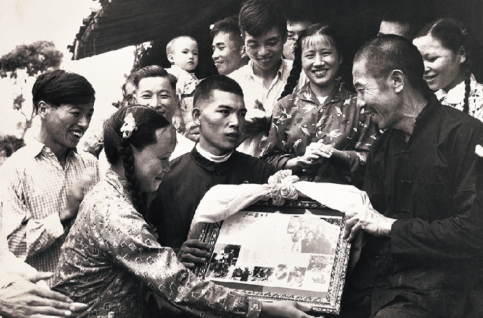 徐老背完这首诗,继续说:“1962年,叶根土的女儿桂凤结婚,邀请我参加,于总编知道后不仅鼓励我参加,而且建议我把《一户人家十年间》的照片装在镜框当礼物。当叶根土看到礼物后,连声说:‘真好,真好,它是我家的传家宝’。女儿出嫁那天,这组照片被当作了陪嫁品,寓意不要忘记党的恩情。于冠西听了之后,不仅让编辑把我写的《桂凤的婚礼》进行了修改,而且亲自为这篇报道书写了标题《陪嫁的“传家宝”》。照片发表后,不仅成了轰动全省农村的大新闻,而且被《人民日报》转载,影响很大!”