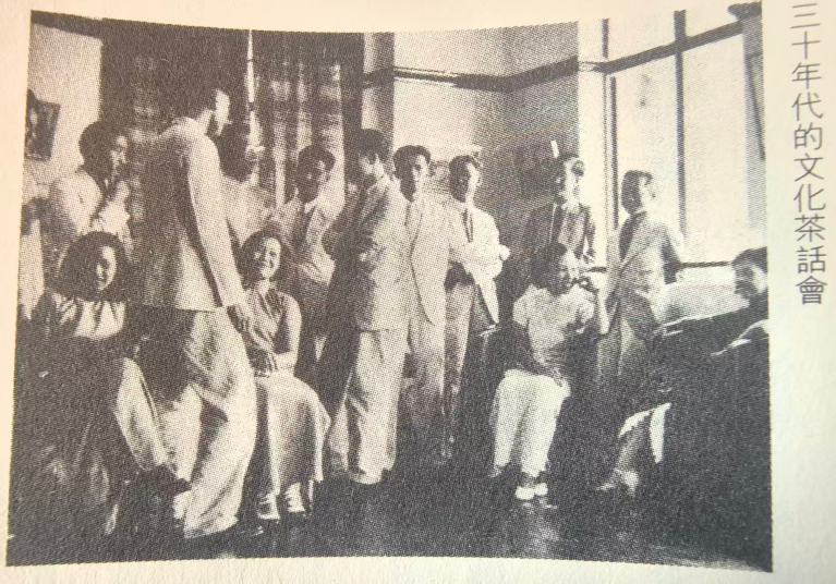 1930年代摄于香港,中间侧身者为章欣潮(右七)