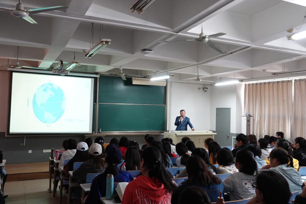 鞠航先生通过讲述自己六次珍贵的极地探访之旅,与师生分享途中逸闻趣事,探讨有关极地生态乃至地球生态的思考。作为山东省摄影家协会副主席,鞠航先生摄影作品数量繁多且质量上乘,丰富的游记照片让师生得以更好地了解南北极,领略南北极的别样风景,体会极地世界的生活百态,感受白色冰雪世界的魅力。穿插其中的旅行小故事,让大家从实际运作层面了解到南北极点的探访方案和线路,获知如何克服恶劣气候和航路阻碍的注意事项等,宝贵的经验阅历拓展了同学们对于极地世界的认识,也在大家心中点燃了未来梦想探访极地的火种。此外,联系当前世界环境背景,鞠航先生给大家着重强调了南北极的生态保护问题。他表示:“新一代青年肩负着重要使命,每个举动都有可能改变世界生态环境的未来。”在鞠航先生看来,南极态势的不乐观大多是由于陆地上人类过度开发生态系统造成的,只有人类真正认识到环保的重要性,并做出改变,才能维护生态平衡,延续人类的未来。