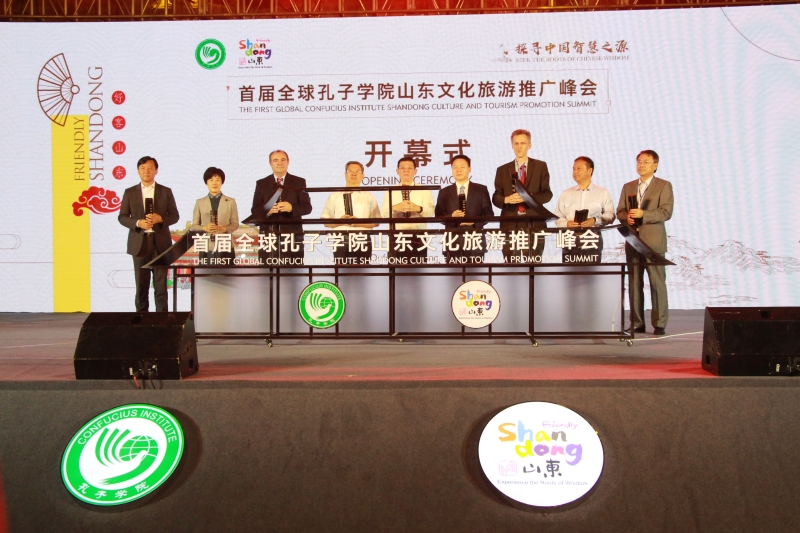 8月14日,由国家汉办和山东省旅游发展委员会共同举办的首届全球孔子公司山东文化旅游推广峰会在曲阜市香格里拉酒店开幕。
