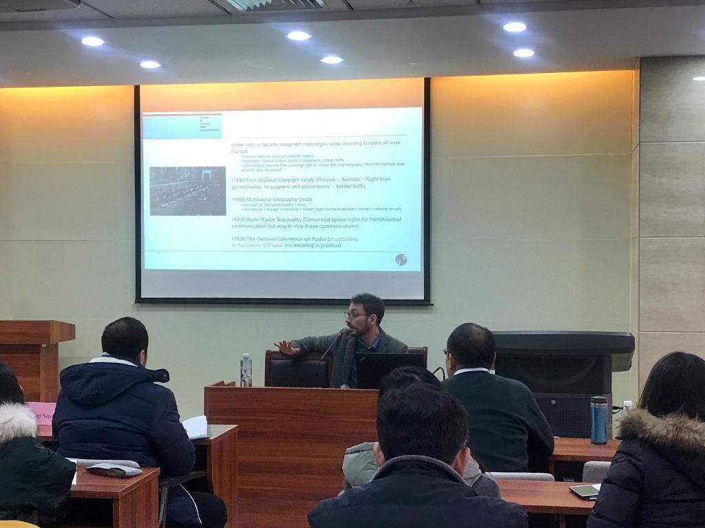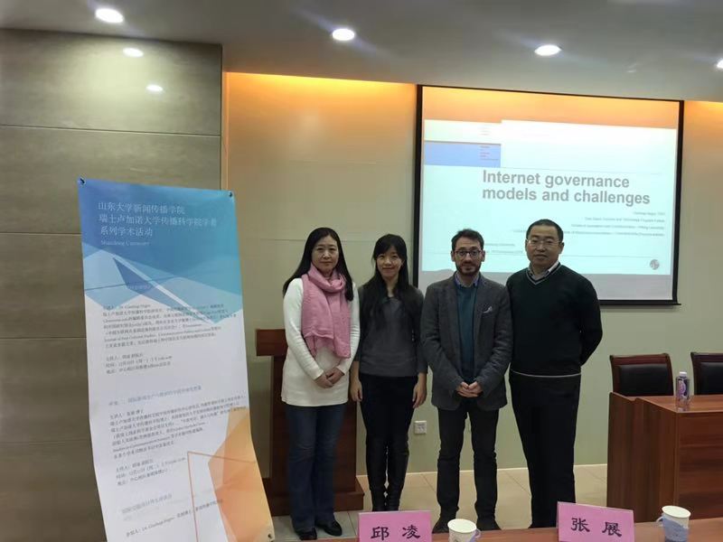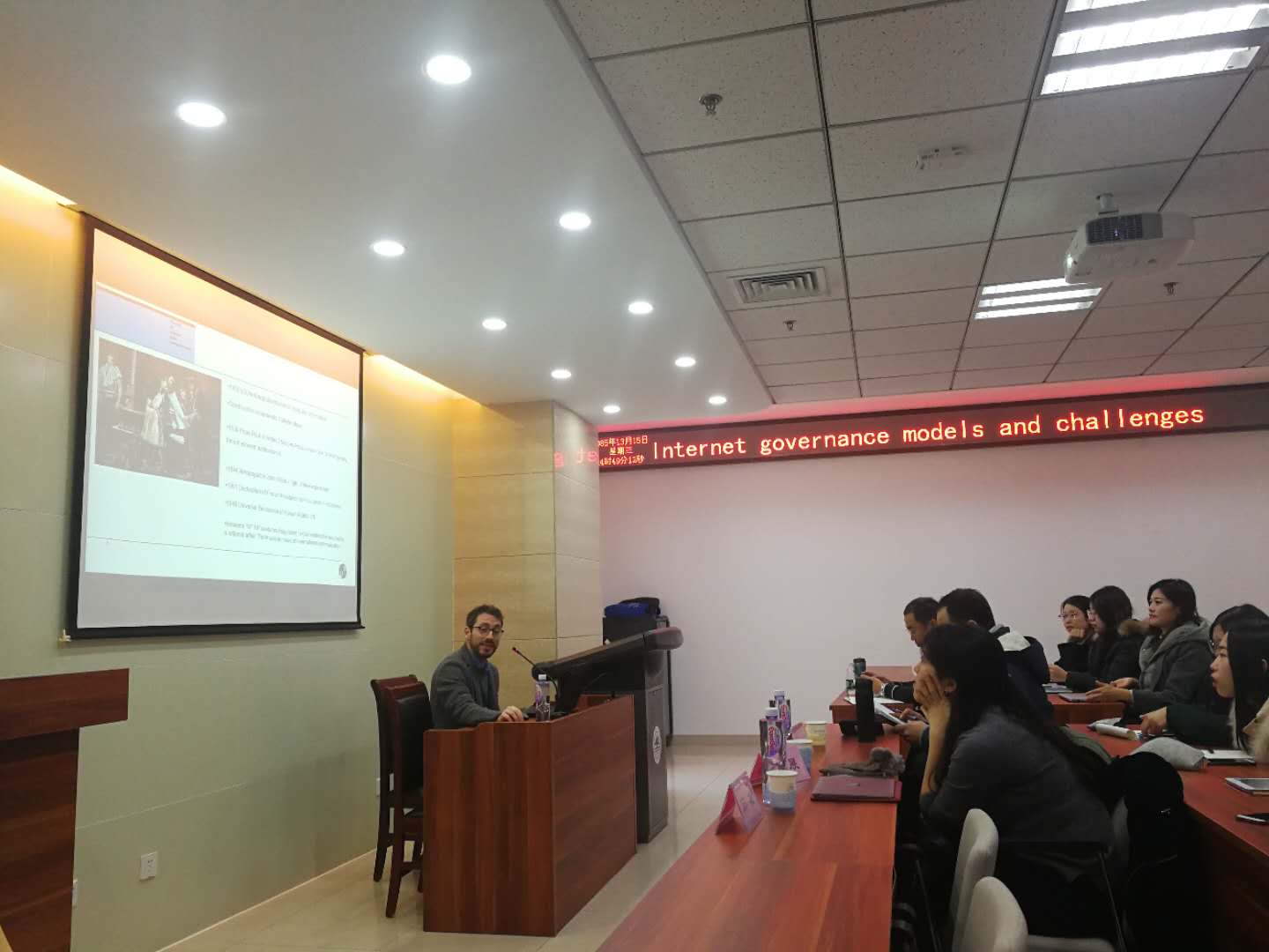 12月10日下午,瑞士卢加诺大学传播科公司研究员Gianluigi Negro博士做客BB贝博艾弗森,为大家带来了题为“互联网治理模式与挑战”(Internet governance models and challenges)的学术讲座。讲座由公司副经理邱凌主持,瑞士卢加诺大学传播科公司中国传媒研究中心研究员张展博士、威海校区文化传播公司副经理张文祥、公司副教授杨晓冬参加了此次讲座。