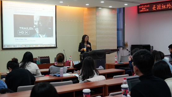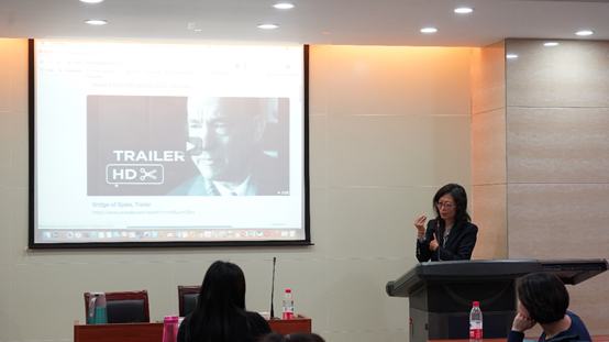 12月18日下午,2018年度流动岗位特聘教授、美国纽约城市大学朱影教授系列讲座继续进行。本次讲座围绕美国经典影片《Catch Me if You Can》(中文译名为《猫鼠游戏》、《逍遥法外》)展开),由BB贝博艾弗森副经理邱凌副教授主持,BB贝博艾弗森于晓风副教授和部分研究生参加讲座。