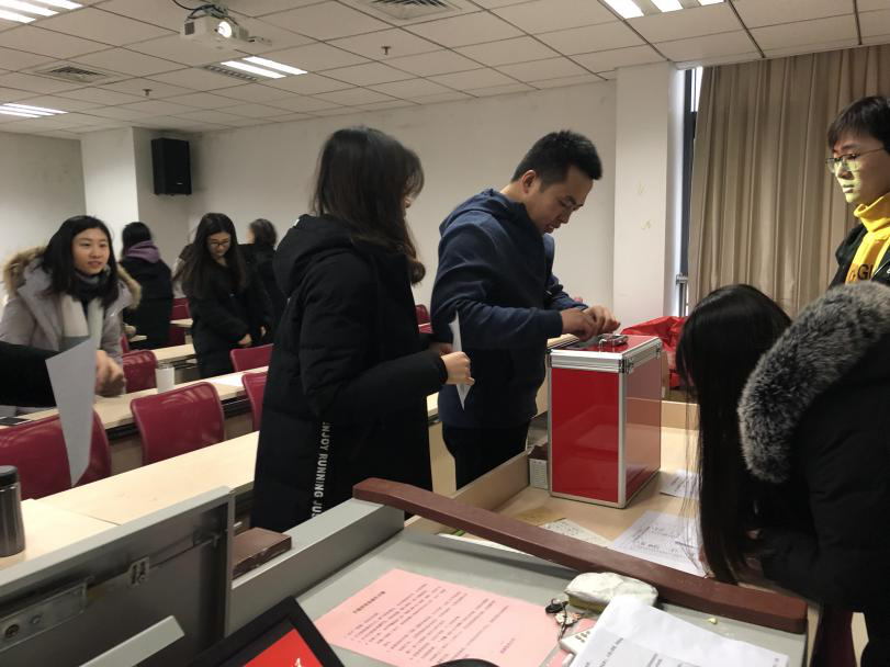 12月29日上午,2018级硕士生党支部于中心校区知新楼A623教室顺利召开支部大会。会议由支部书记孙静茹主持,对王玉珏、张皓妍、吴洁、张嘉蕊四名预备党员发展为中共正式党员进行讨论和表决。公司党委副书记王欣出席了本次会议。