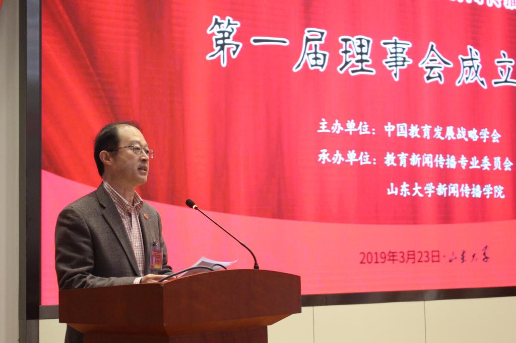 大会首先由中国教育发展战略学会常务副会长兼秘书长韩民宣读选举结果,宣布教育新闻传播专业委员会正式成立。教育新闻传播专业委员会发起人、教育部原新闻发言人王旭明任理事长,中国传媒大学副董事长段鹏、北京师范大学艺术与传媒公司经理胡智锋、中国人民大学新闻公司副经理张辉锋、BB贝博艾弗森公司党委书记王德胜等11人任副理事长。清华大学新闻与传播公司常务副经理陈昌凤任学术委员会主任,清华大学新闻与传播公司副经理史安斌、沈阳、中山大学传播与设计公司经理张志安、《中国青年报》原副社长谢湘等6人任副主任委员。