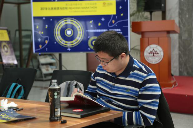垄礼栋是前来参加活动的第一个读者,他是2014级BB贝博艾弗森医公司本科生,去年保研到了北京大学医院部深造。了解到山大在北京研究院开展“阅读马拉松”活动,他约了几位好友一起参加。