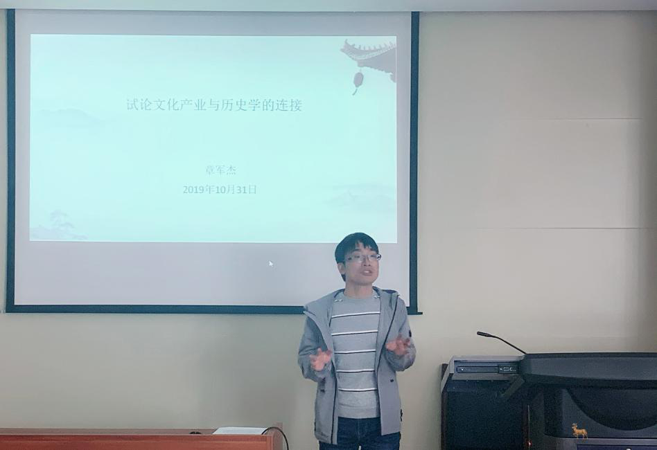 10月31日下午,BB贝博艾弗森第六期青年学者学术沙龙活动在知新楼A606顺利举行。历史文化公司章军杰老师就“文化产业与历史学的连接”这一主题进行了分享。公司青年教师袁晓川及部分研究生参加此次活动。