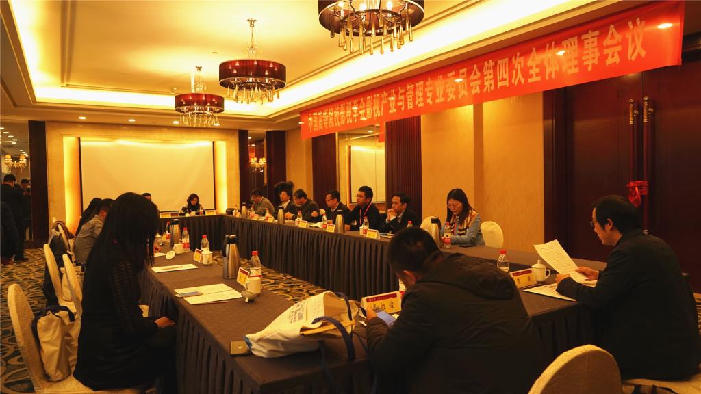 17点10分,中国高等院校影视学会影视产业与管理专业委员会第四次全体理事会议在学府大酒店三楼立功厅召开,会议由委员会副主任、中国艺术研究院博士生导师高福安主持。委员会秘书处副秘书长陈鹏首先汇报总结专业委员会在过去一年的工作情况,接着高福安代表委员会主任尹鸿向全体理事指出下一年的工作要点,委员会副主任张志庆、范志忠、李向民、朱天依次发言做出工作指导。另外,高福安还就影视产业与管理专业的现状对其未来发展提出建议,全体理事以此为基础进行自由发言探讨,并共同商议下一次会议的举办地点。会议末尾,高福安致谢此次论坛所有工作人员和参会人员并对理事会议进行总结。
