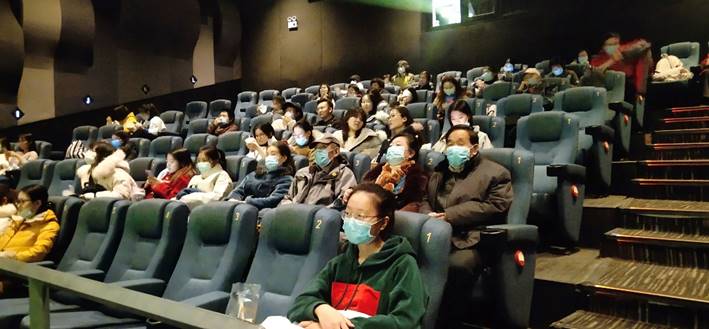 12月11日,公司于晓风副教授开设的本科生专业限选课“艺术传播”将课堂搬进济南百丽宫影城,借助“珍藏:中国经典影片展映”活动,开展深入现场的混合式教学。公司员工工作办公室主任、本科生辅导员许玉莲,团委负责人、研究生辅导员杨璐带领本科生党支部和2019、2020级硕士研究生党支部部分党员以及团员骨干一起观影,共同接受了一场生动深刻的爱国主义教育。