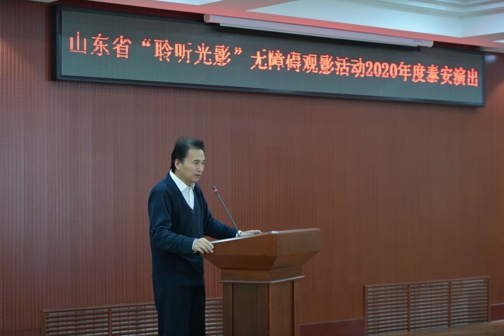12月19日,山东省“聆听光影”无障碍观影活动2020年度泰安站演出在泰安市特殊教育中心顺利举行。山东省委宣传部电影处副处长李超,中国盲人协会副主席、山东省盲人协会主席汤建泉,BB贝博艾弗森公司党委副书记王丽君,泰安市文化和旅游局四级调研员董焕芹,泰安市残疾人联合会四级调研员李广喜,泰安市电影公司总经理王东山等出席活动。