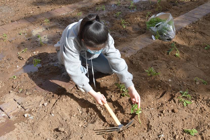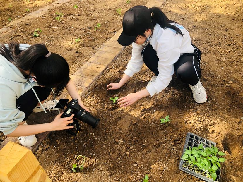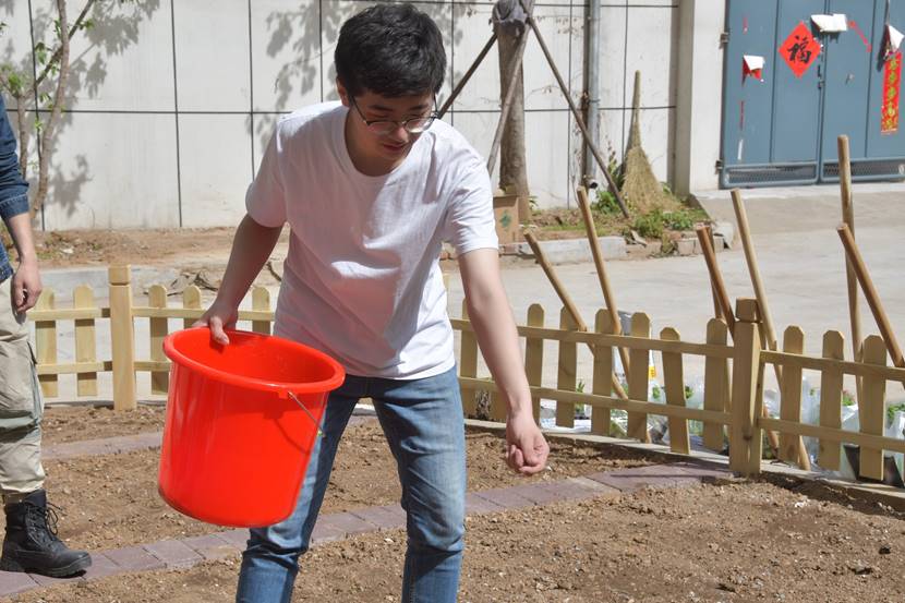 随后活动在山东省农科院蔬菜研究所两位专家的技术指导下开展。两位老师为大家详细讲授并示范种植操作要领,同学们按照分组认领责任地,兴致勃勃地种植了韭菜、西红柿、黄瓜、丝瓜、佛手瓜、小白菜、油菜、秋葵等蔬菜。面对陌生的播种工作,同员工刚开始感到新奇又无措,随着专家指导,渐渐地进入角色。大家纷纷表示,在并肩协作中共同学习、共同成长,不仅收获了劳动本领,更加深了同学间的友谊,农场学习体验令人难忘。参与种植的万钊廷同学表示:“在五一劳动节前夕体验耕种,是一次难忘的经历,长这么大没拿过农耕工具,锄了没几分钟就觉得腰酸背痛,劳动不易、粮食难得、定要珍惜。”