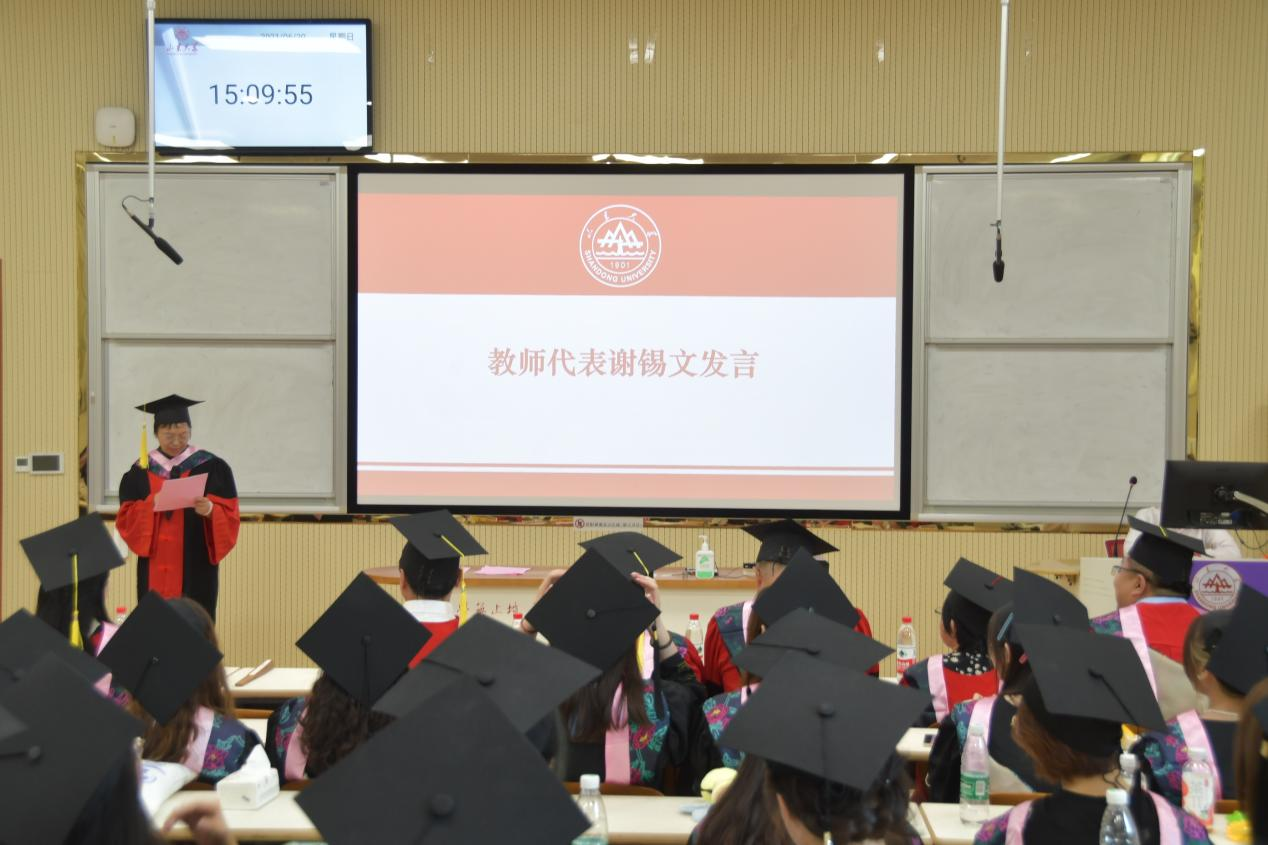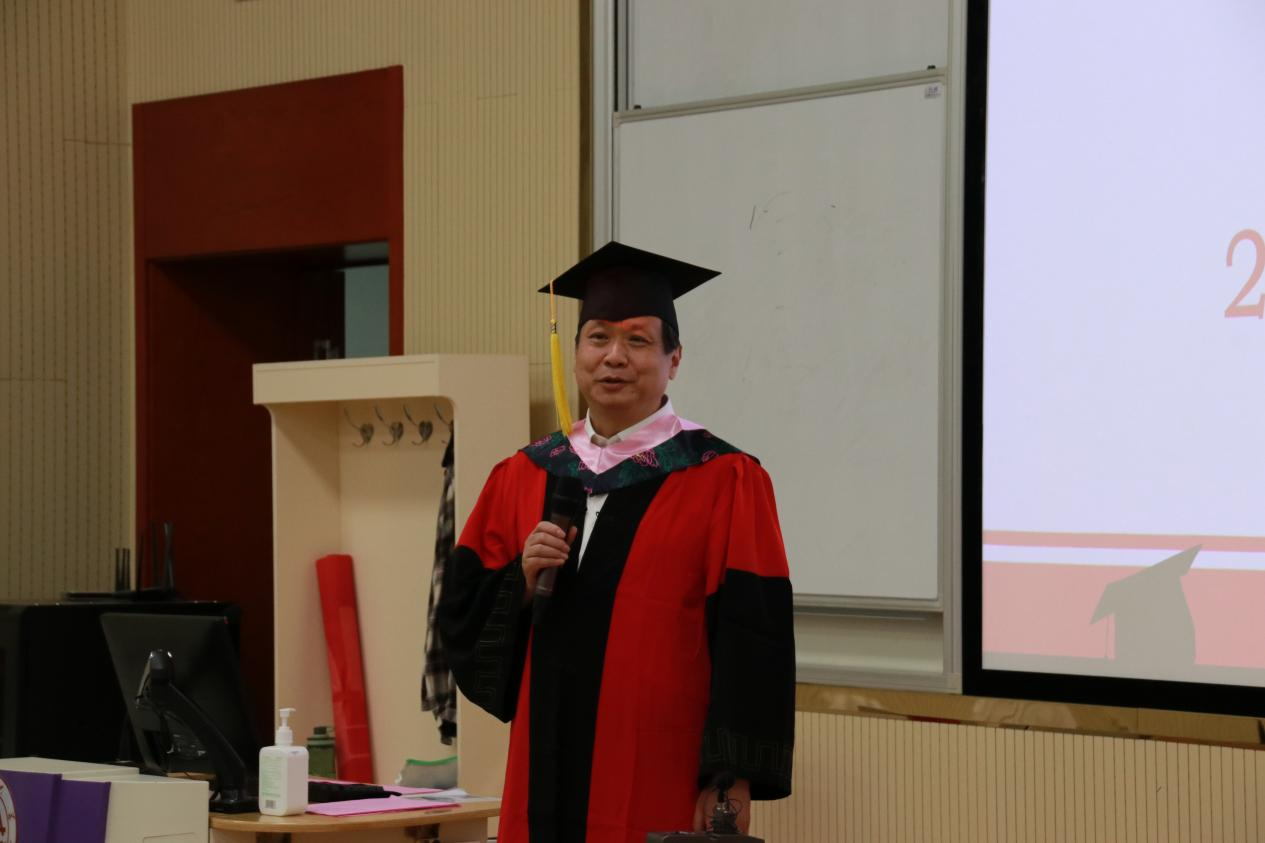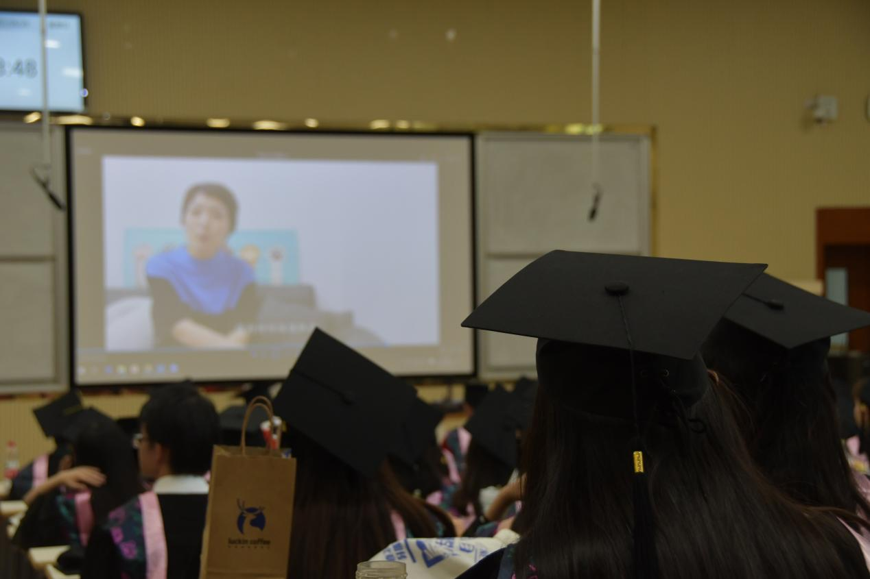 下午三点半,研究生毕业典礼正式开始。毕业MV中老师们的寄语为大家走好未来之路提出了美好希冀,愿大家“身在远方,惜君如常”;而上午拍摄毕业照时的镜头下午就出现在视频中,同样令大家惊喜不已。