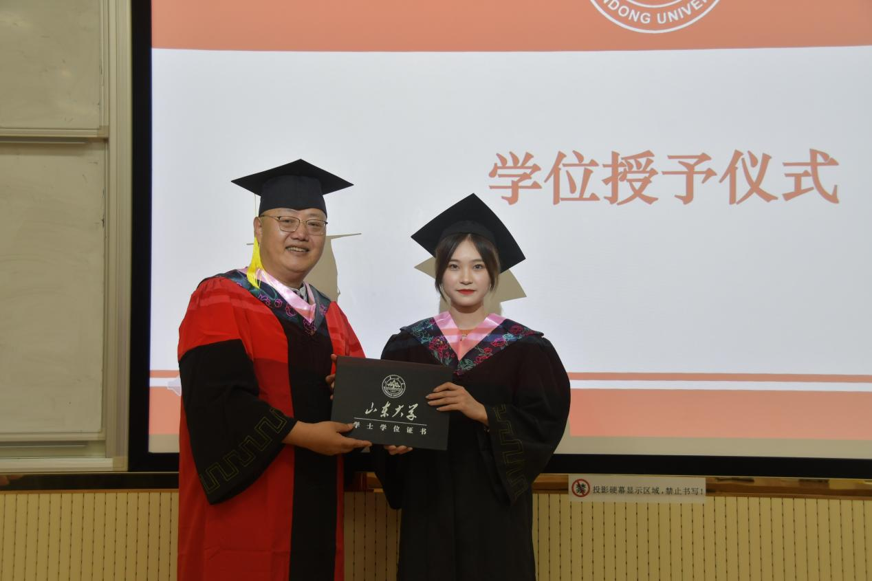 全体起立奏唱国歌后,吕芃宣读2021届员工班级理事名单并颁发聘书;副经理倪万宣读《表彰优秀毕业生决定》,公布山东省与BB贝博艾弗森优秀本科生毕业生名单;副经理邱凌宣读学位授予决定,恭喜各位同学顺利毕业。
