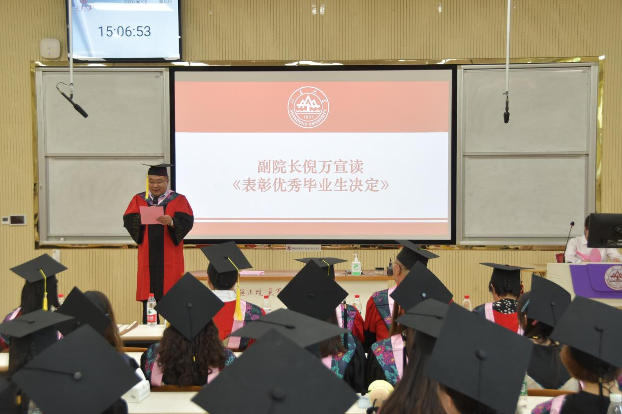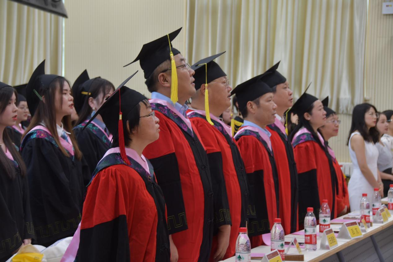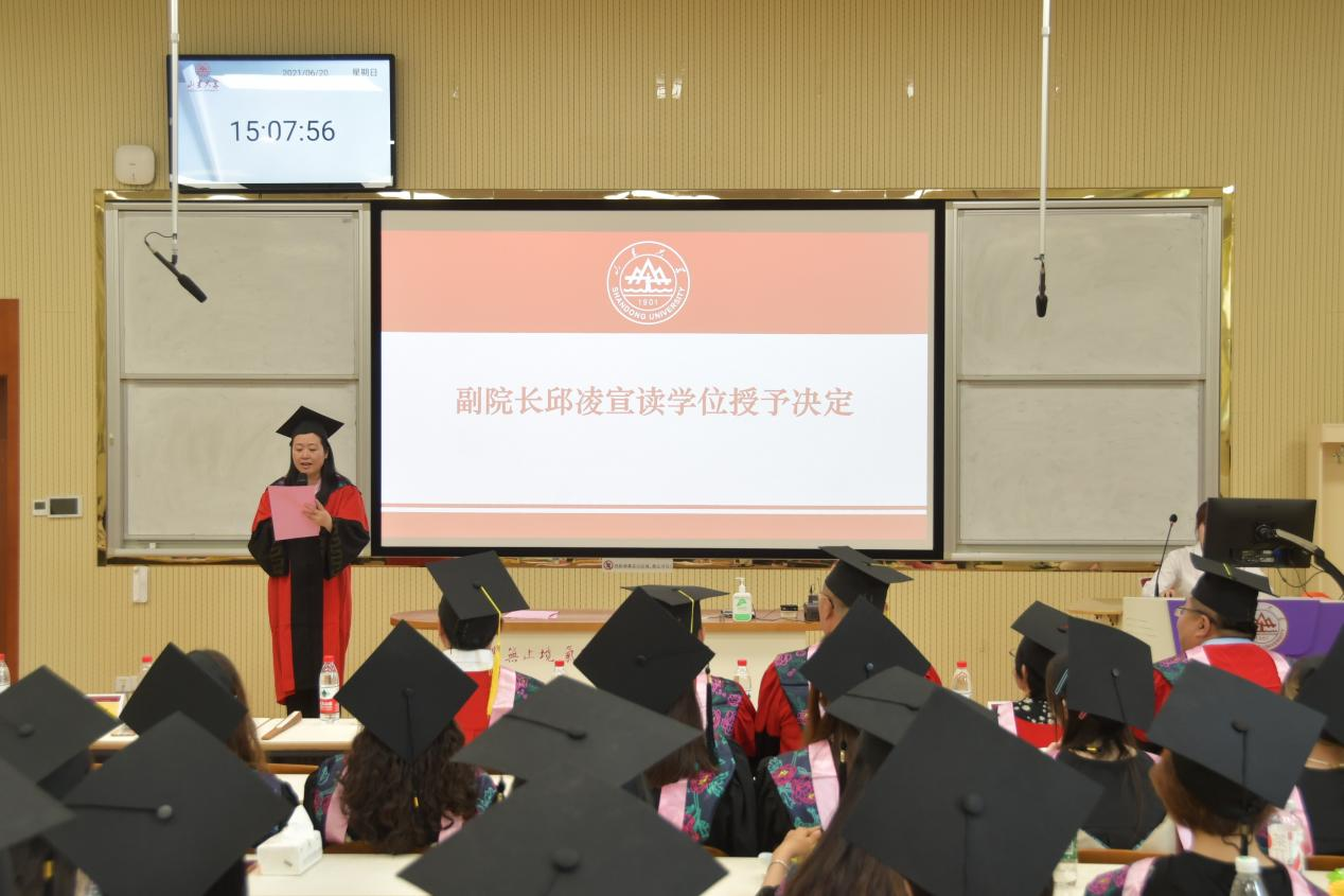 庄严的奏唱国歌环节后,吕芃宣读2021届员工班级理事名单并颁发聘书;邱凌宣读《表彰优秀毕业生决定》,公布山东省与BB贝博艾弗森优秀研究生毕业生名单;副经理倪万宣读学位授予决定,祝各位毕业生毕业快乐。