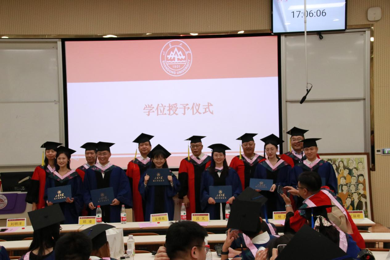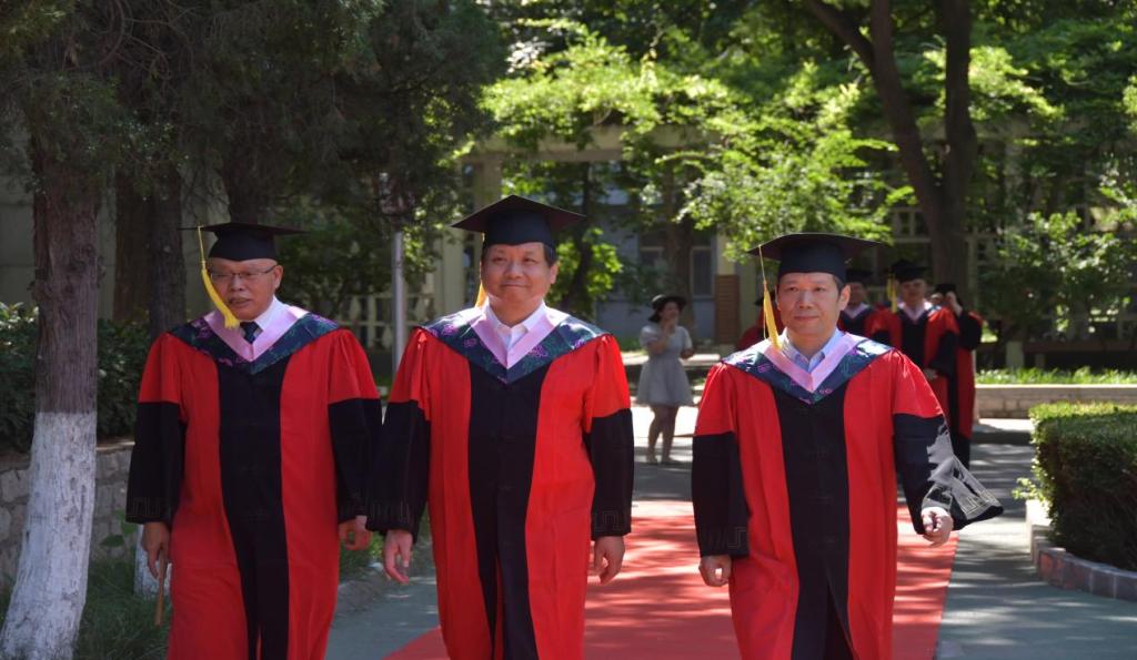 吕芃、王德胜、刘明洋、唐锡光、倪万、臧丽娜六位学位委员会的导师依次为毕业生拨穗并授予学位证书。