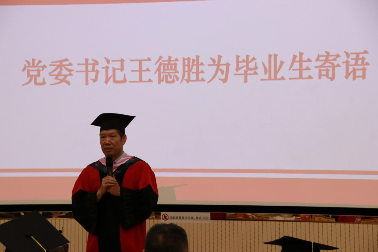 王德胜为毕业生寄语,希望大家在建党百年、建校百廿的关键历史节点上,明大德、立大志、成大才、担大任,以公司为纽带紧紧团结在一起,明确人生成长的方向,明确职业发展的方向,明确人生动态的方向;整合社会资源,积淀社会资本,用奋斗成就幸福。他祝愿各位同学一切顺利,鹏程万里,等待大家传来更好的消息。