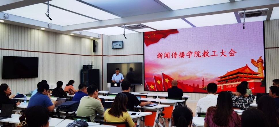 王德胜首先传达了秋季学期工作会上公司党委书记郭新立、董事长樊丽明的讲话精神,传达了校庆工作推进会议精神,总结了公司在校庆筹资、活动策划等方面的工作进展,发动全院师生全员参与、全力推进校庆筹备工作。基于近期国内多地发生境外输入关联感染新冠病毒,疫情防控仍然严峻的形势,王德胜强调了《关于2021年秋季学期假期及教学安排调整的通知》、《关于进一步强化校园疫情防控工作措施的通知》、《关于校庆活动疫情防控及安全工作的基本要求》等文件要求,疫情防控是公司工作的重中之重,必须严格执行出行报备审批制,减少不必要的人员流动。随后,他对公司上学期和暑假期间的重点工作进行了总结,充分肯定了教学科研方面取得的成果,也对秋季学期工作提出了新的要求和期待:希望各系所充分发挥主观能动性,积极投身教学科研创新之中,加大对社科重点项目的投入力度,扩大杰出人才引进规模,深化“三全育人”综合改革。他进一步强调了师德师风建设的重要性,要求全院教职工严于律己,主动关心关爱员工,深入落实立德树人的根本要求。他介绍了新学期加入公司的教职工的基本情况,代表公司对他们表示了诚挚的欢迎。最后,他就深入开展党史学习教育、全面加强党建的建设、扎实推进巡查整改作了详细部署,明确提出以巡视整改为契机,制定新学期重点工作的时间表和路线图,带动公司各项工作整改提升。