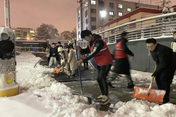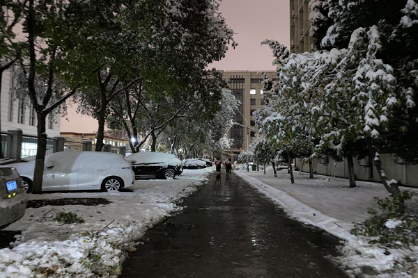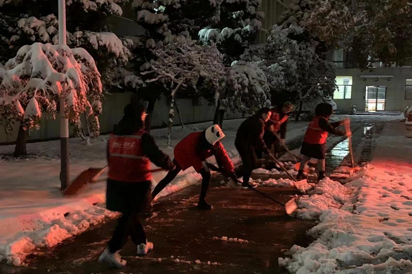 当天下午,公司团委向全体员工发出了号召和倡议,研究生党支部、本硕各年级团支部积极响应。同学们冒着严寒,在半小时内迅速集结起一支积雪清扫志愿服务队伍,扫雪工作得到了快速、高效地推进。