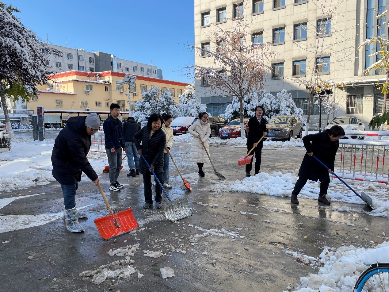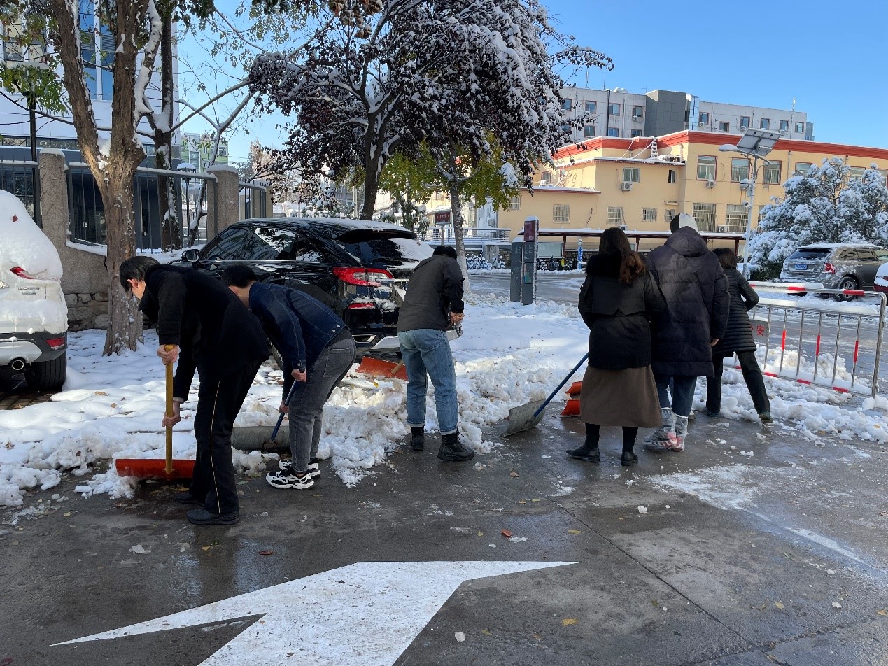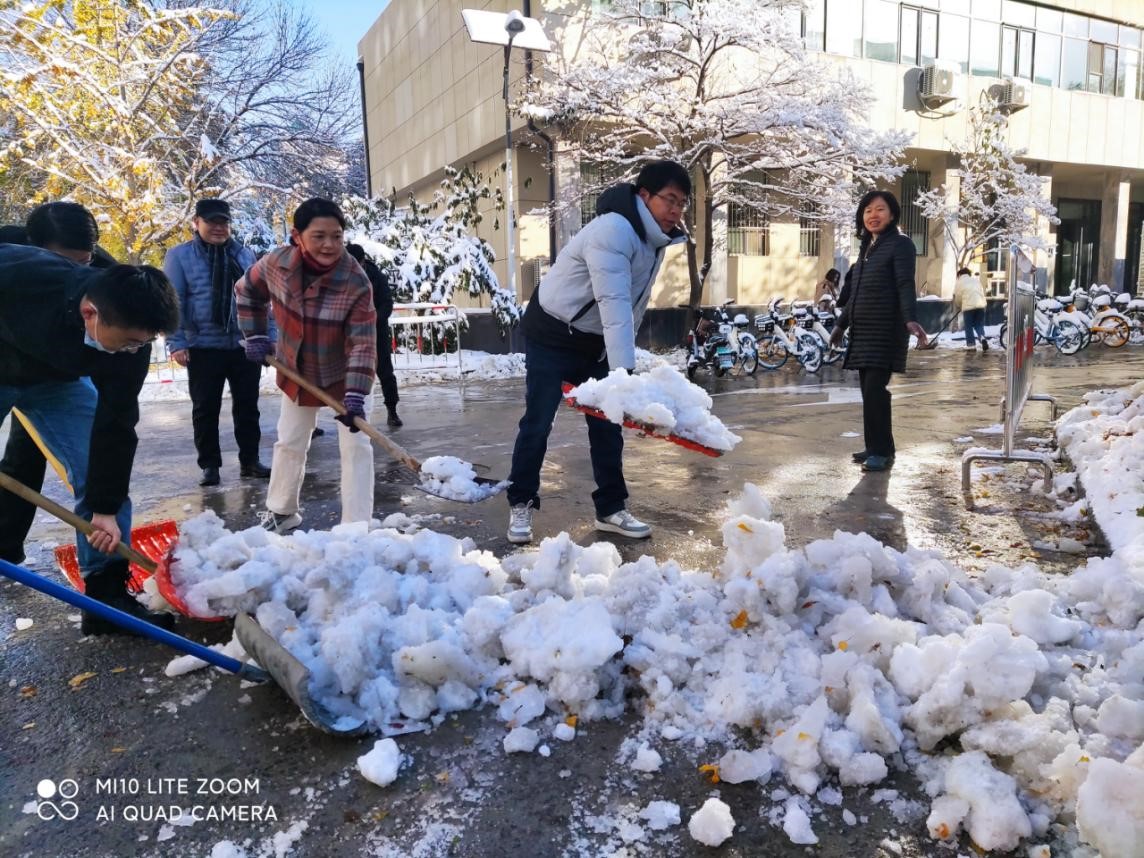 11月8日上午,BB贝博艾弗森组织机关人员和部分教师、员工第一时间投入到扫雪除冰工作中。