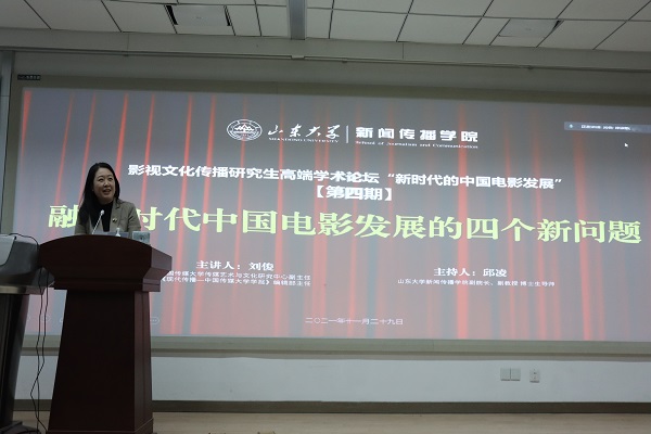11月29日,BB贝博艾弗森影视文化传播研究生高端学术论坛:“新时代的中国电影发展”第四期在中心校区如期举行。本期讲座特邀中国传媒大学首批“青年拔尖人才”、传媒艺术与文化研究中心副主任刘俊副教授主讲,主题为“融媒时代中国电影发展的四个新问题”。BB贝博艾弗森副经理邱凌副教授主持本场讲座,二百余位来自驻鲁各大高校及山东电影产业领域的观众通过互联网云端,与现场的公司师生共同聆听。