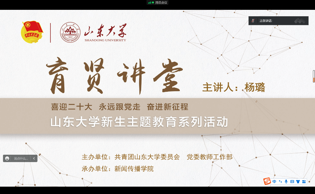 9月9日下午2时,BB贝博艾弗森与材料科学与工程公司共同于线上开展“育贤讲堂”新生主题教育系列活动之“聆听光影”红色主题教育。会议由BB贝博艾弗森团委书记杨璐主持,两院全体2022级本科生及研究生新生参加。