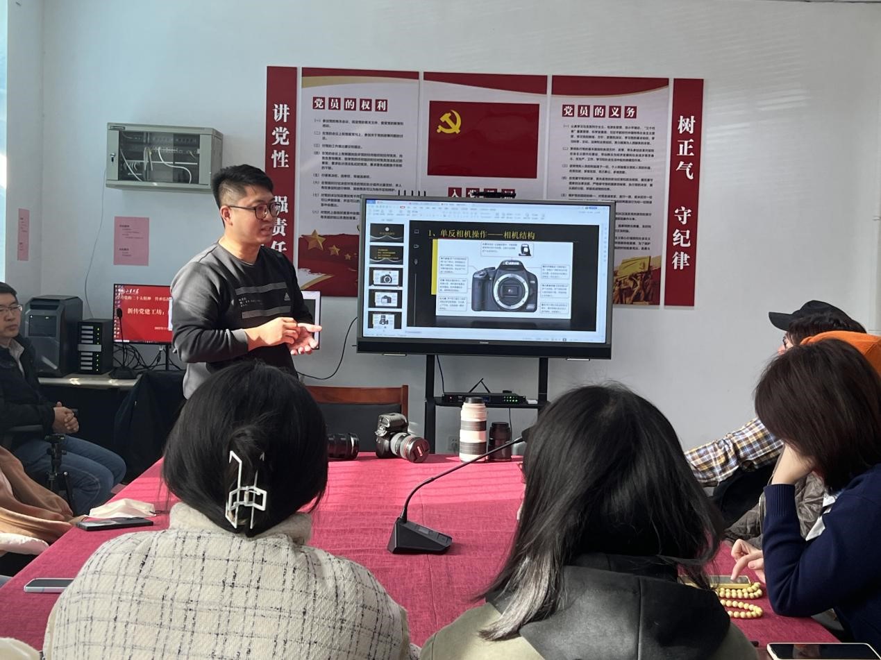 本次活动进行了单反相机摄影、摄像实践培训,采取理论和实践相结合的方式。郭坦做为主讲人,鼓励参训师生自己动手操作,了解机器应该如何使用,培养新媒体技能。