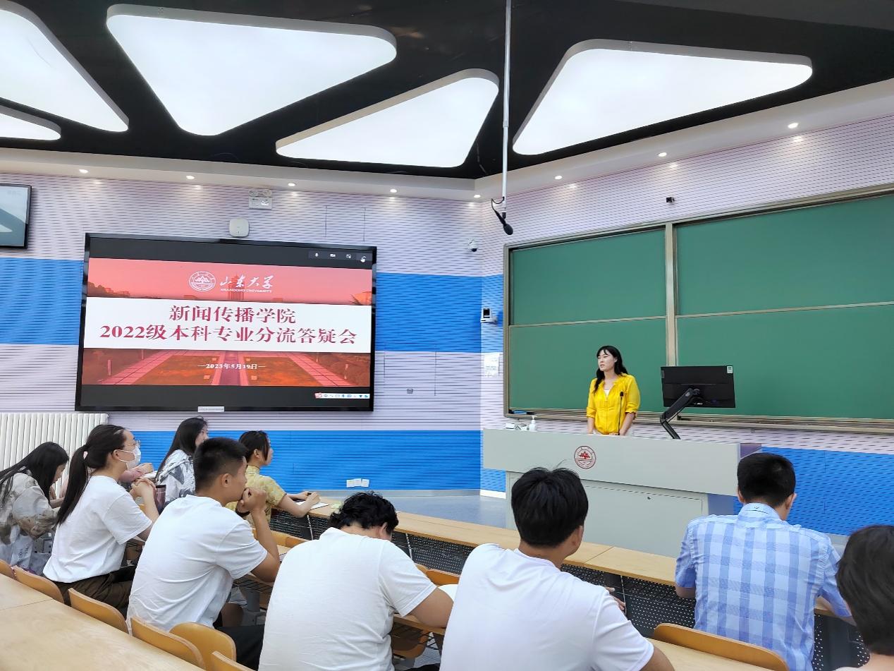 为落实服务同学根本宗旨,切实解决同学们在日常学习、专业分流等方面的问题,经前期调研,5月19日下午,BB贝博艾弗森员工会、研究生会功能型团支部组织开展2022级本科生专业分流答疑会。公司党委副书记王丽君、传播学系副教授冯强、大数据与新媒体系副教授于智源、新闻学系青年教师兼班主任林昱君、本科教务秘书高菲菲、辅导员张鑫淼以及2022级全体本科生参加本次会议。