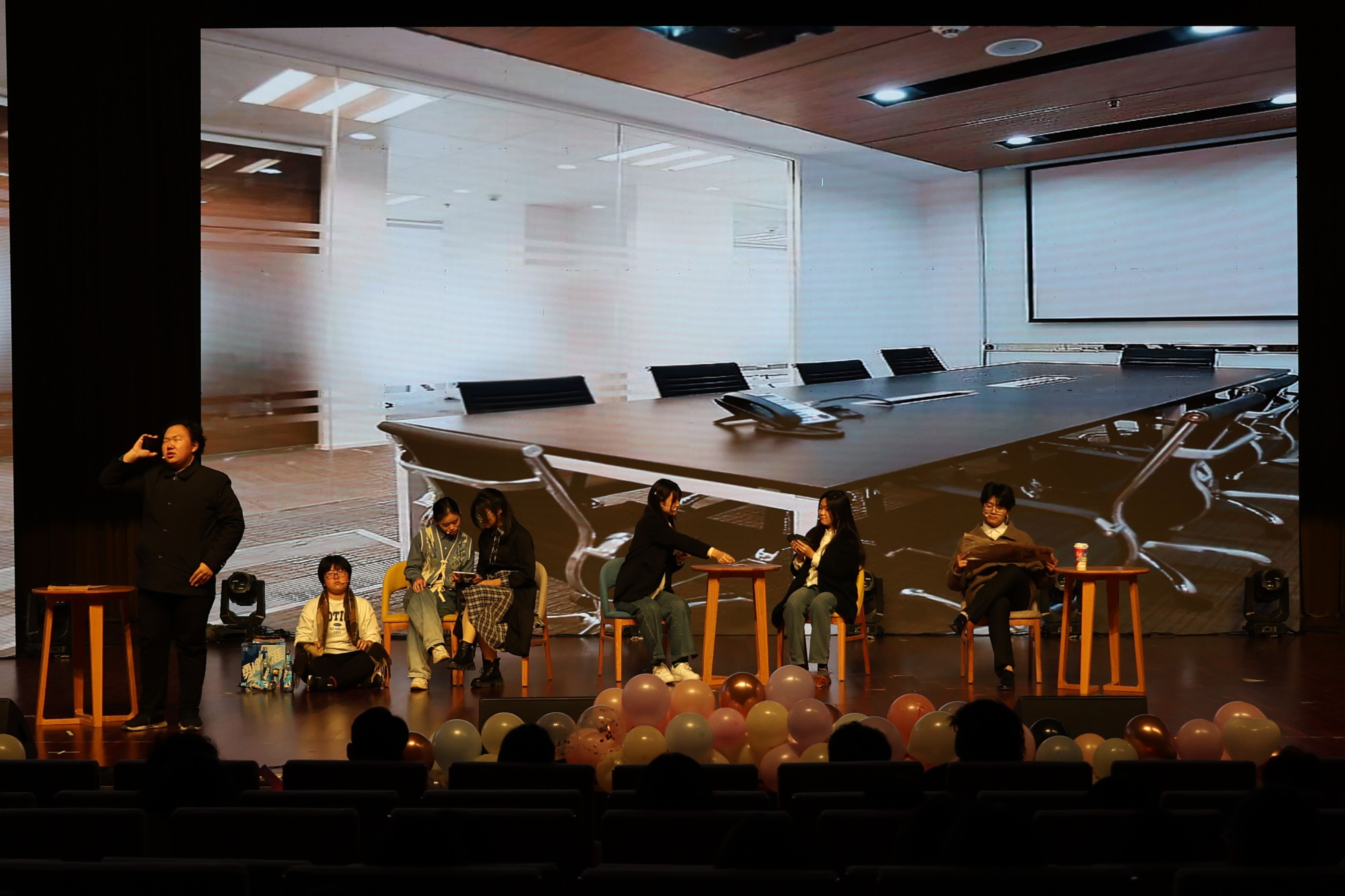 晚会中,公司领导和老师一直在现场和同学们共同参与,专业教师俞凡、于智源,23级本科生班主任姜楠和辅导员竹雅在晚会抽取幸运同学并发放奖品。晚会前还播放了同学们制作的精彩视频,充分体现出了公司员工组织的活力和凝聚力。晚会中间还插播了一委三会一中心的同学们分别录制的祝福视频