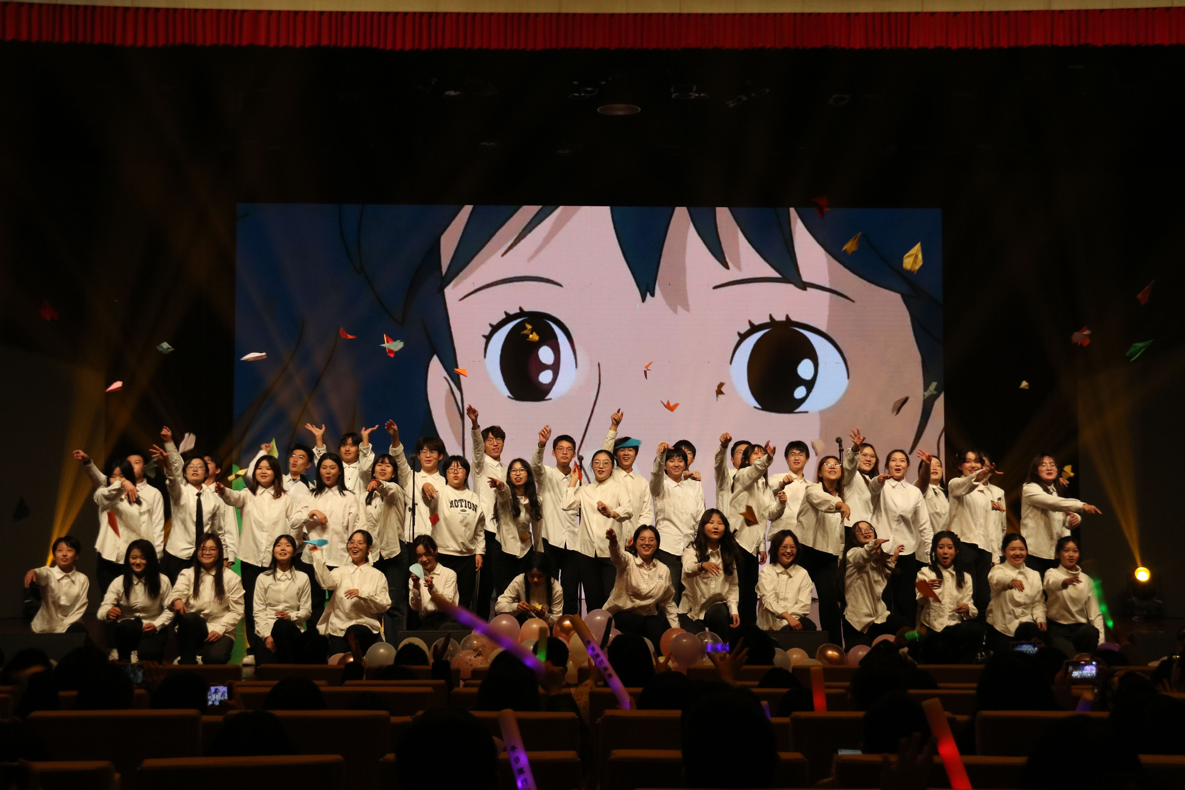 晚会已接近尾声,BB贝博艾弗森员工组织工作人员唱响《陪你度过漫长岁月》,分享同一份喜悦与感动,守护同一份热诚与真挚。最后,全体演职员合影留念,2023级迎新晚会到此圆满落下帷幕。