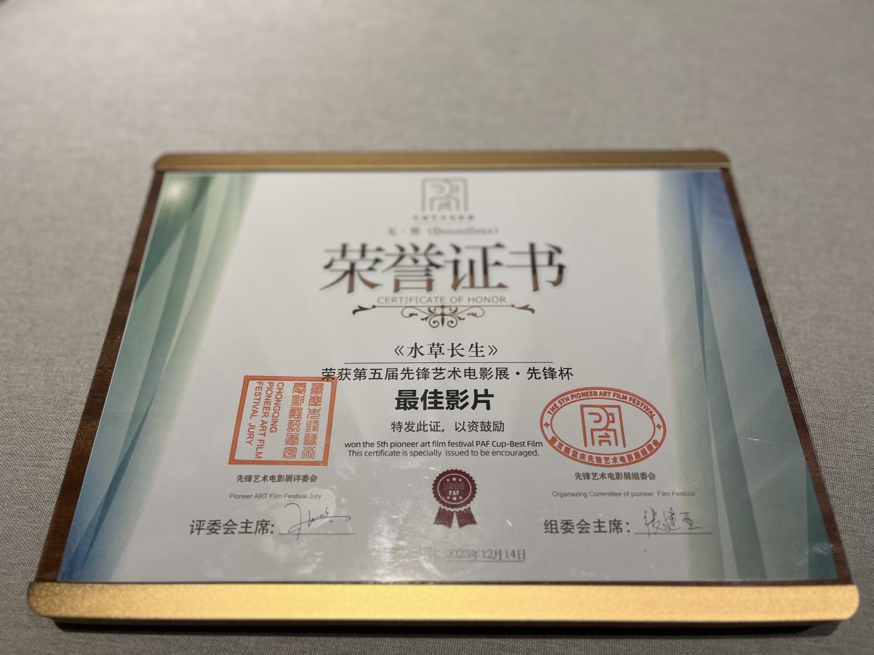 12月14日,第五届中国先锋艺术电影展(PAF)在重庆落下帷幕。由BB贝博艾弗森影视文化艺术传播研究中心联合出品,公司副教授、BB贝博艾弗森影视文化艺术传播研究中心执行主任于晓风担任出品人、策划的《水草长生》,斩获最佳影片、最佳导演两项大奖,成为本届影展的最大赢家。第五届中国先锋艺术电影展组委会主席团主席张建亚、评委会主席张杨作为颁奖嘉宾为影片颁奖。该片是首部由BB贝博艾弗森出品的院线电影剧情长片。
