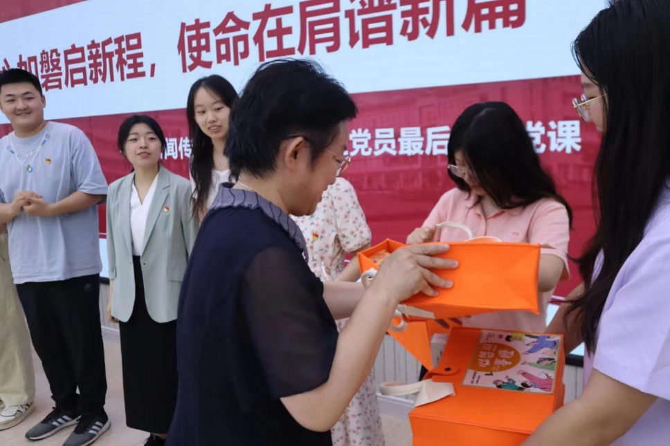 之后,王丽君、王培为毕业生党员赠送毕业礼物。