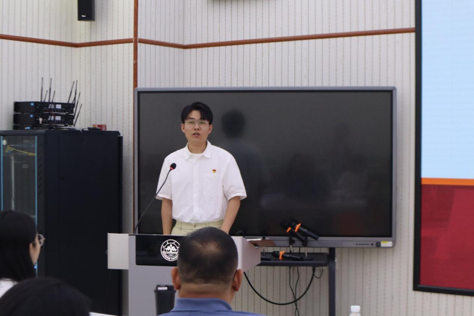 随后,毕业生党员代表杜宇凡、徐少磊分别发言。杜宇凡回顾了自己作为青年党员参与本科生党支部党务工作的经历,对公司和支部的教育与培养表达了深深感谢。他表示,作为毕业生党员,自己会始终牢记面向党旗宣誓时铭记于心的初心使命,不忘母校教诲,踏踏实实做好每一份工作,讲好山大故事、红色故事、中国故事,成长为一个能够为祖国“发声”的人,让世界更好认识中国、了解中国。毕业生党员徐少磊加入了BB贝博艾弗森研究生支教团,将在今年7月份前往新疆开展为期一年的支教,为祖国中西部地区的基础教育事业贡献自己的力量。他表示,四年来,党的关怀教育与公司的培养,让他对家国情怀有了更深刻的理解,他将带着山大人的担当精神与崇实品格,在强国建设、民族复兴新征程的滚滚洪流中争做一朵“脚下沾着泥土、心里装着人民”的浪花。