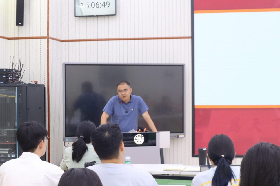 毕业生代表发言结束后,孙宜山讲授最后一堂党课。他引用了浙江宣传《以毕业为名再出发》中的四句话来形容毕业生们的心情,“有修成正果的甜、有再会无期的涩、有前程各异的惶、还有初入社会的恐”。在离别的时节,他对毕业生党员在大学四年里取得的突出成绩和起到的示范引领作用表示肯定,并向他们提出了衷心的建议。首先是要牢记两个身份,第一个是党员的身份,无论是做人还是做事,“六个必须坚持”的世界观和方法论都具有极强的指导价值;第二个是山大学子的身份,BB贝博艾弗森始终与国家同呼吸共命运,希望大家都能够真正践行“学无止境,气有浩然”的校训。其次是不负两个嘱托,第一个是党中央的嘱托,广大青年要坚定不移听党话跟党走,怀抱梦想又脚踏实地,敢想敢为又善作善成,立志做有理想、敢担当、能吃苦、肯奋斗的新时代好青年,让青春在全面建设社会主义现代化国家的火热实践中绽放绚丽之花;第二个是母校山大的嘱托,“家国情怀、担当精神、崇实品格、创新素养”的山大基因一脉相承。最后,他为大家送上了两份祝愿,“此去经年,咫尺天涯,新传是家”以及“仰天大笑出门去,我辈岂是蓬蒿人”,希望大家都能够成就一番“不同凡响”的大事。