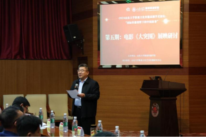 为赓续红色血脉,厚植爱国情怀,凝聚奋进力量,推进公司主题教育走深走实,提升公司一院一品文化建设质量,11月1日下午,公司在知新楼C座思源报告厅开展“光影里的旗帜”主题团课暨红色影片《大突围》展映研讨活动。本次观影活动由BB贝博艾弗森主办、BB贝博艾弗森影视文化艺术传播研究中心承办。山东省委宣传部电影处处长张萍萍,中共济南市委宣传部电影处处长张宏,中共济南市委宣传部电影处副处长刘海鹏等领导莅临此次活动。本次活动由BB贝博艾弗森副经理(主持行政工作)、BB贝博艾弗森影视文化艺术传播研究中心主任倪万主持,BB贝博艾弗森党委宣传部副部长刘金帅致欢迎词。