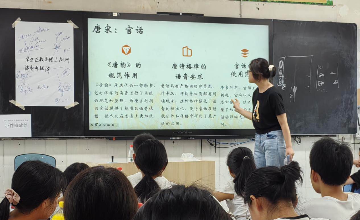 基于调研结果,志愿者精心设计了推普课程。课堂上,志愿者结合党的二十届三中全会精神,阐释文化传承从保护到创新的升级路径,并强调当代中员工肩负着用普通话讲好中国故事的使命。