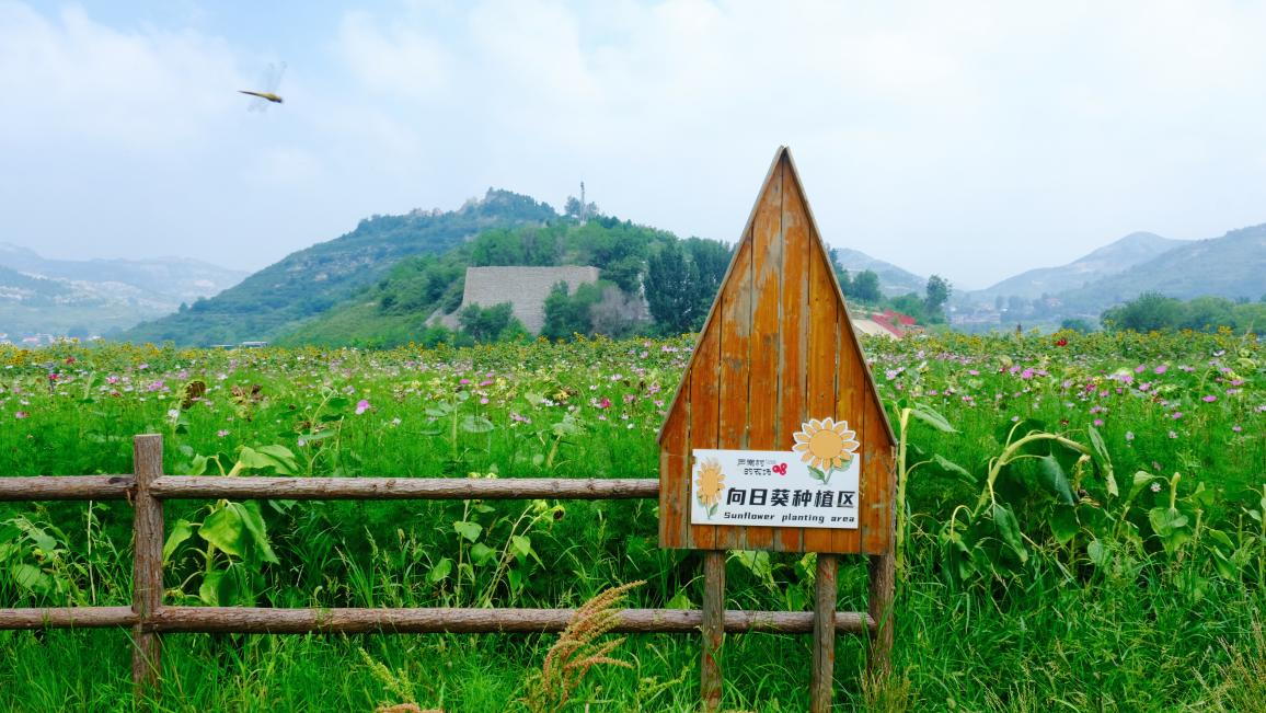 盛夏时节,村中大片向日葵种植园迎阳而开,金黄花海绵延起伏,与远处的山林田野相映成趣。在村干部带领下,实践团队与村民一起穿行花间,聆听花卉种植背后的故事,用镜头捕捉花田与笑脸,留存这片土地上的温度与希望。村民介绍道,这里曾经是闲置坡地,如今通过引入特色花卉种植和开发文创,不仅美化了村貌,也吸引了众多游客前来拍照打卡。