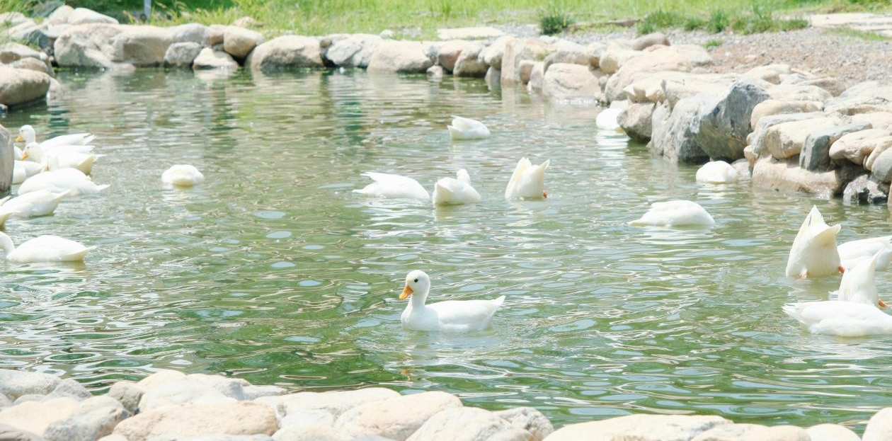当地引入的稻田课堂、蔬菜种植体验和农耕科普小课堂,成为孩子们亲近自然、了解农业的“第二课堂”。农场养殖区的“柯尔鸭之家”深受小朋友喜爱,数十只毛色亮白、体态憨萌的柯尔鸭在水塘中悠然嬉戏,成为村庄中颇具人气的“打卡点”。