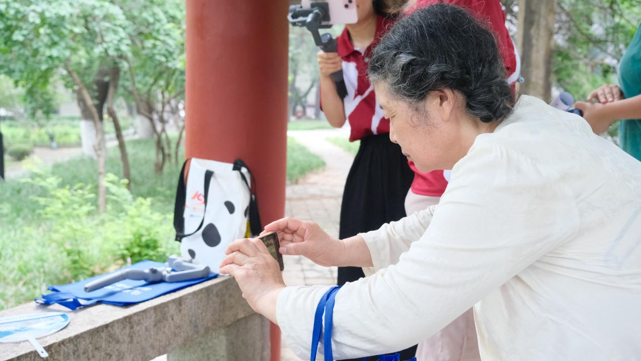 “我之前一直不会把孙女写的书法拍全,现在跟着小老师们学习终于学会了。真是活到老学到老,我们也得与时俱进。”七十多岁的王奶奶举着手机兴奋地展示刚拍摄的假山视频,视频的拍摄手法虽略显生涩,但整体画面清晰完整,达到了预期效果。参与活动的老人们纷纷表示,课程内容实用易懂,不仅让他们掌握了视频拍摄技巧,更增强了运用智能设备的信心。