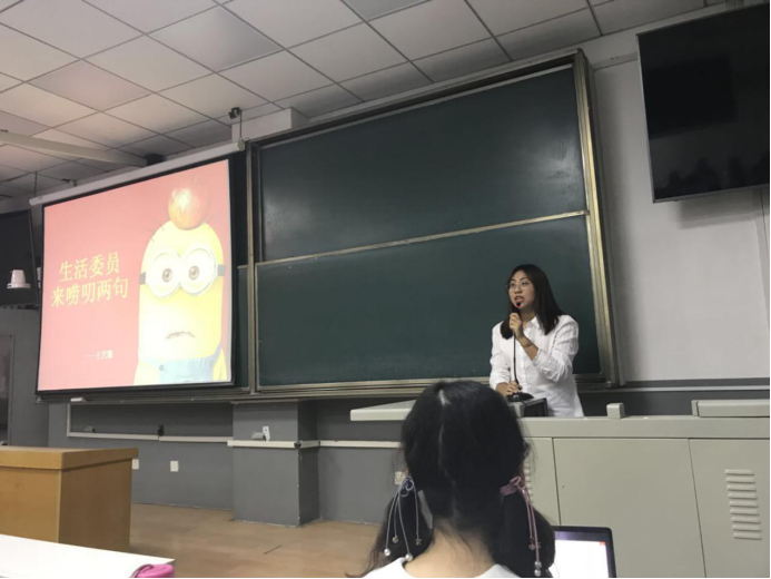 紧接着,二班的生活委员王艺霖向同学们介绍并汇报了上一学年的具体工作和日常事项,从自己担任生委以来心态的转变、这一年工作中面临到的种种问题入手,详细地说明了生委的日常工作以及希望同学们配合的地方。